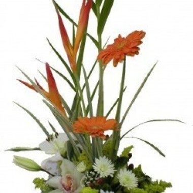 Delicado arreglo de flores tropicales cuya flor principal es la orquídea realzando la grandeza de este presente